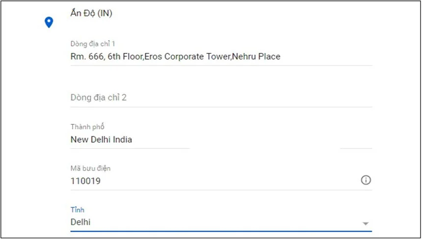 Bước 5: Nhập đỉa chỉ để đăng ký